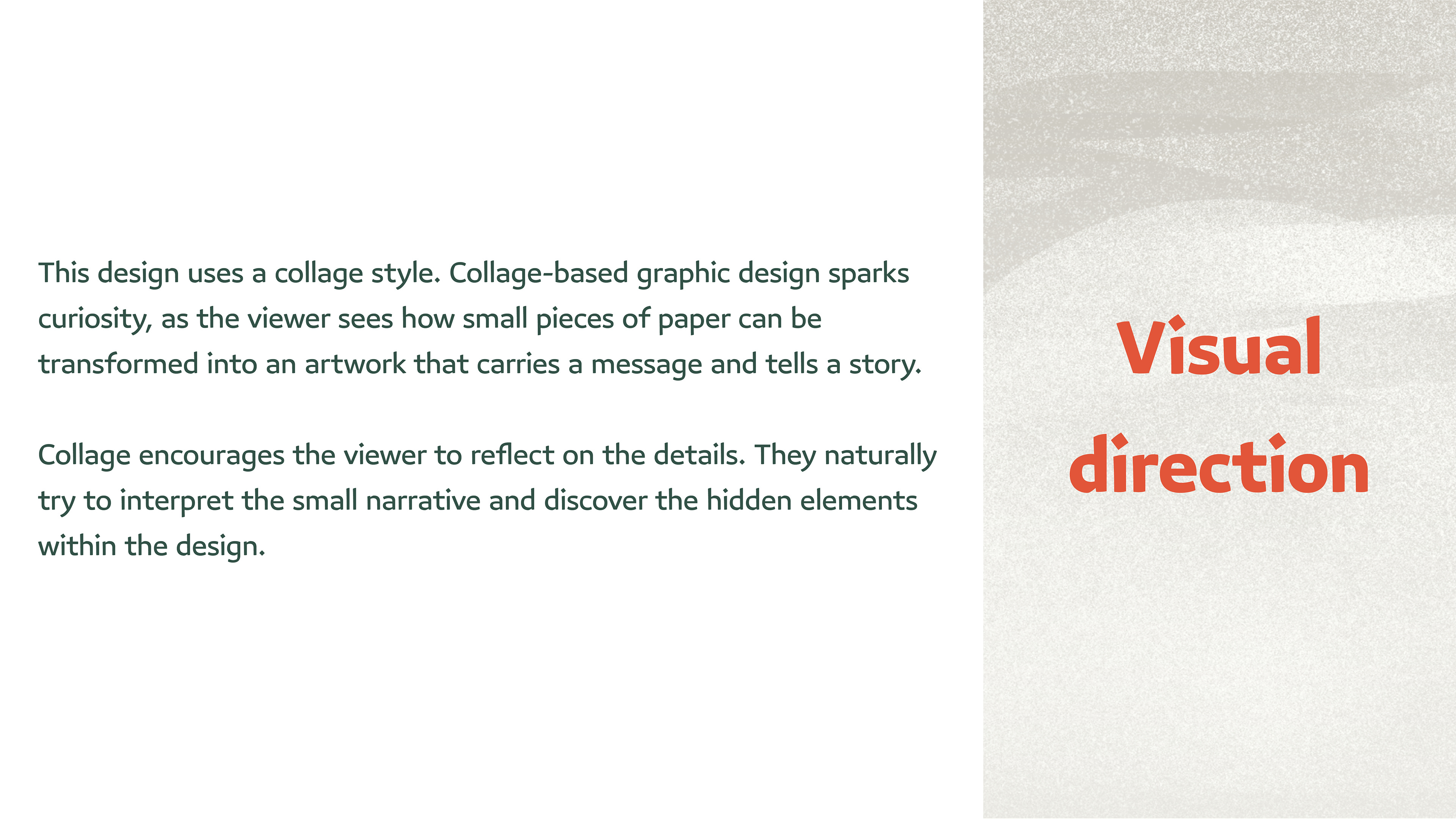 During development, multiple directions were explored before settling on collage as the most fitting expressive approach. Visual hierarchy, textures, and elements were structured to guide viewer attention and reinforce the headline.